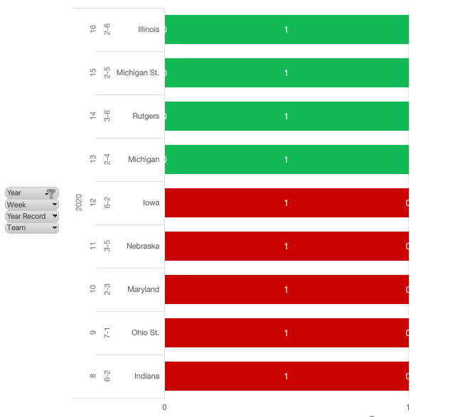 And here is the 2020 season by itself for reference. Separating this out since the BIG schools all played partial schedules.